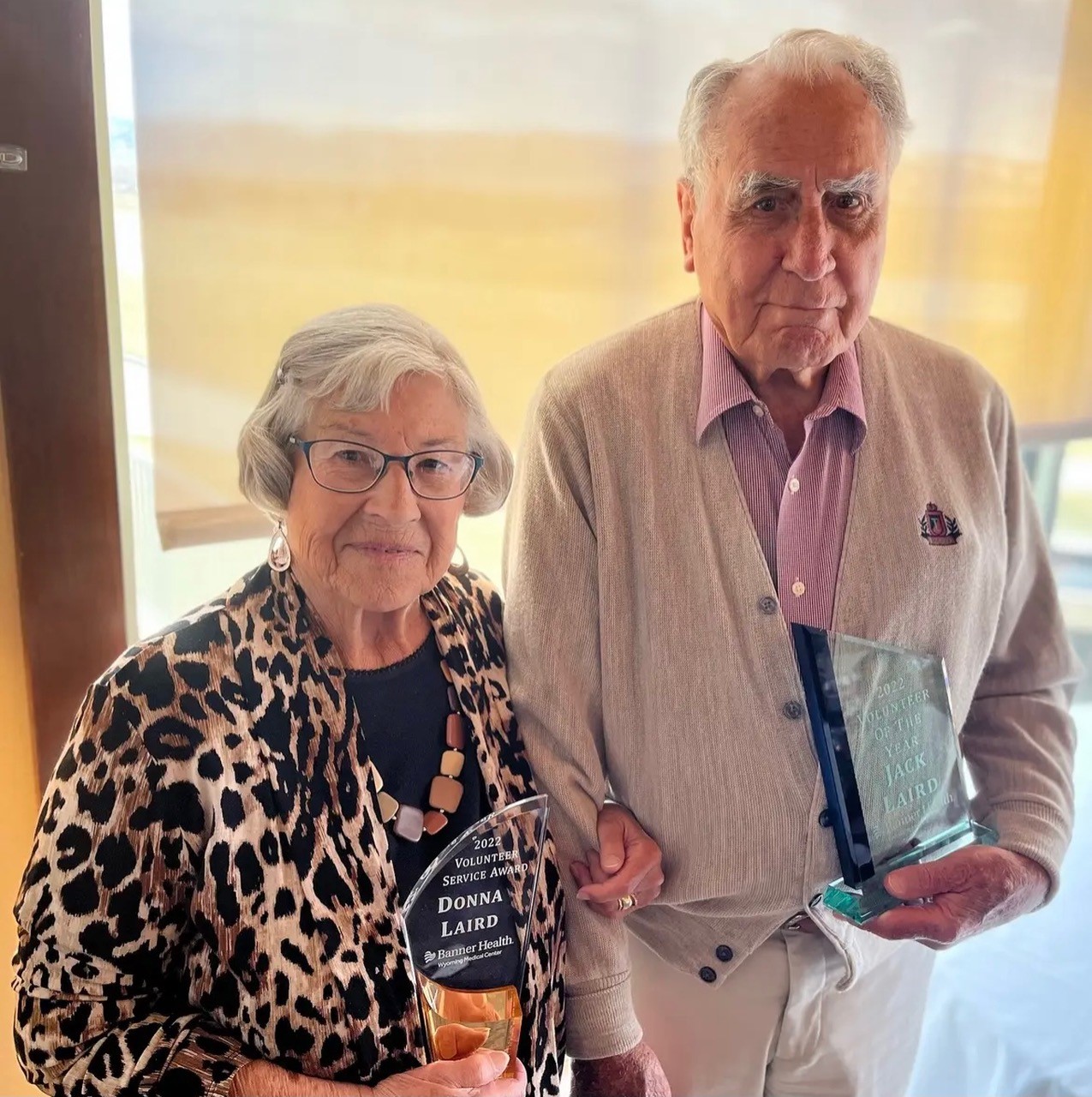 Jack Laird, right, turned 92 years old this year and was named Banner Wyoming Medical Center’s Volunteer of the Year in April 2022. His wife Donna, also a long-time volunteer, received the Volunteer Service Award.