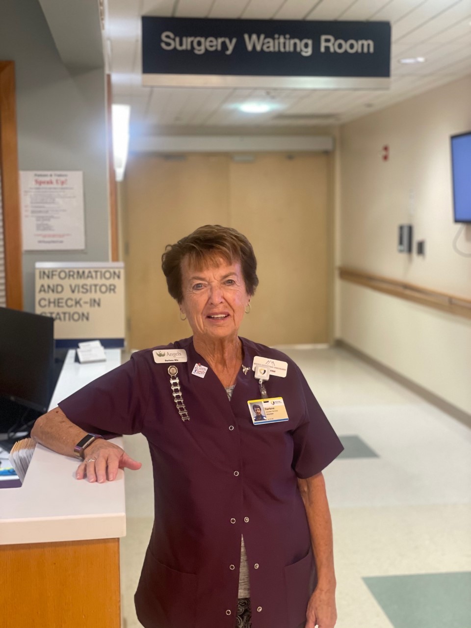 Banner Wyoming Medical Center volunteer Darlene primarily serves at the surgery waiting room desk and helps friends and family members with status updates during their loved one's surgeries.